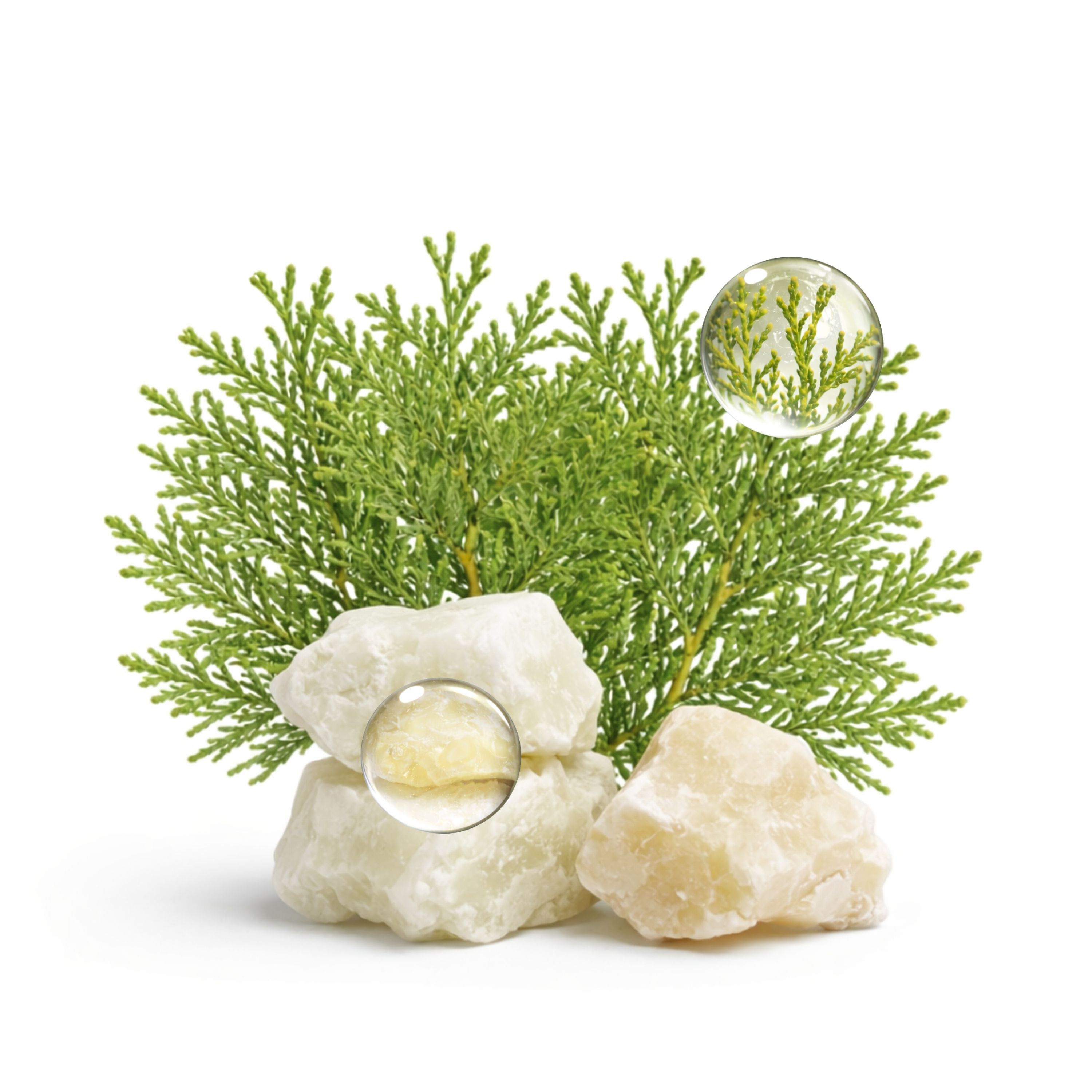 • In its heart, we find woody notes of extreme freshness such as balsam fir, extracted from pine needles. Then the spicy and green notes mark a multi-faceted foliage.