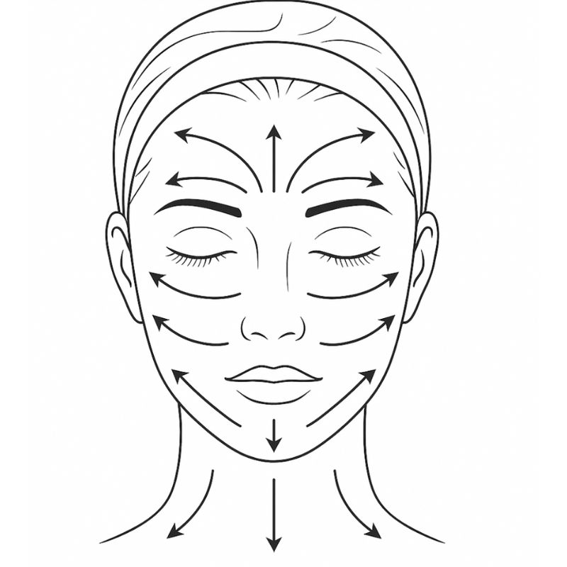 - Utilisez le gua sha 5 fois par semaine, sur peau propre avec une huile ou un sérum. Faites glisser l’outil du centre du visage vers l’extérieur par mouvements doux et lents.